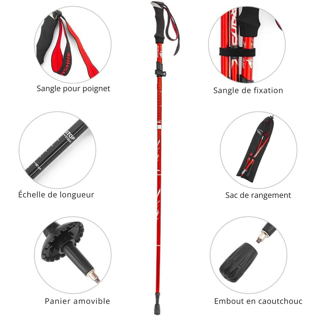 Facilitez vos randonnées avec ces bâtons de trekking spécialement conçus pour offrir stabilité et confort sur tous les terrains. Pliables et ultralégers, ils se transportent facilement et réduisent la fatigue musculaire tout en améliorant votre équilibre.
