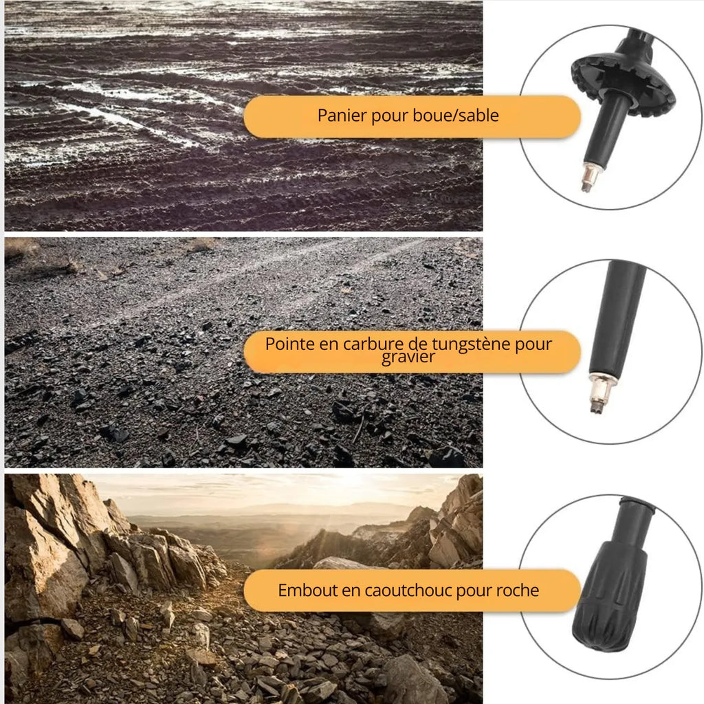 Make your hikes easier with these poles . of trekking specially designed to offer stability and comfort on all terrains. Foldable and ultralight, they are easy to transport and reduce there fatigue muscular while improving your balance.
