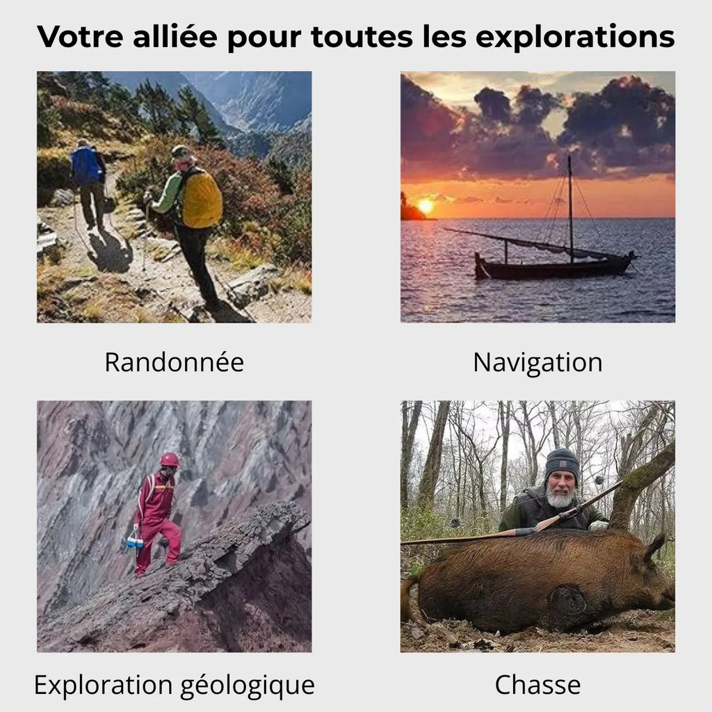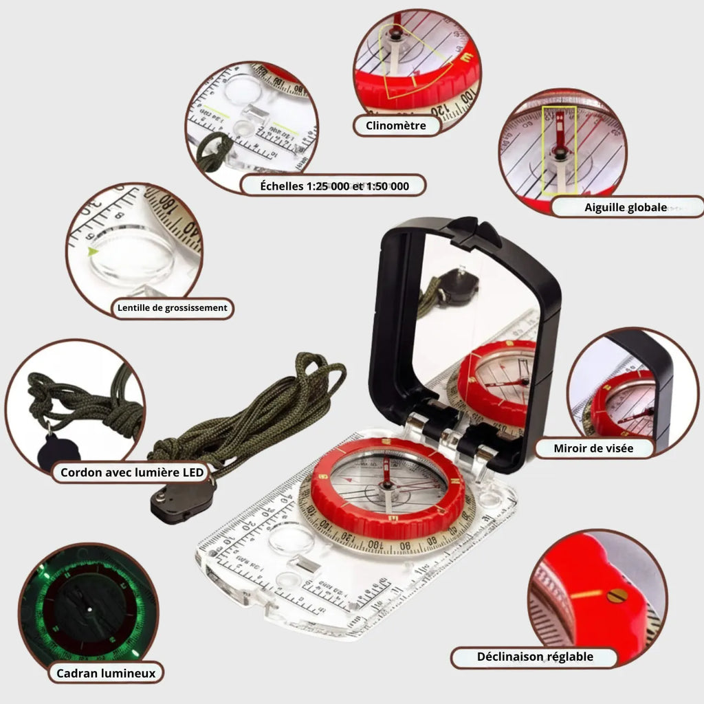 LED + luminous markings to easily read your direction in the dark, ideal for hiking, trekking and bivouacking.