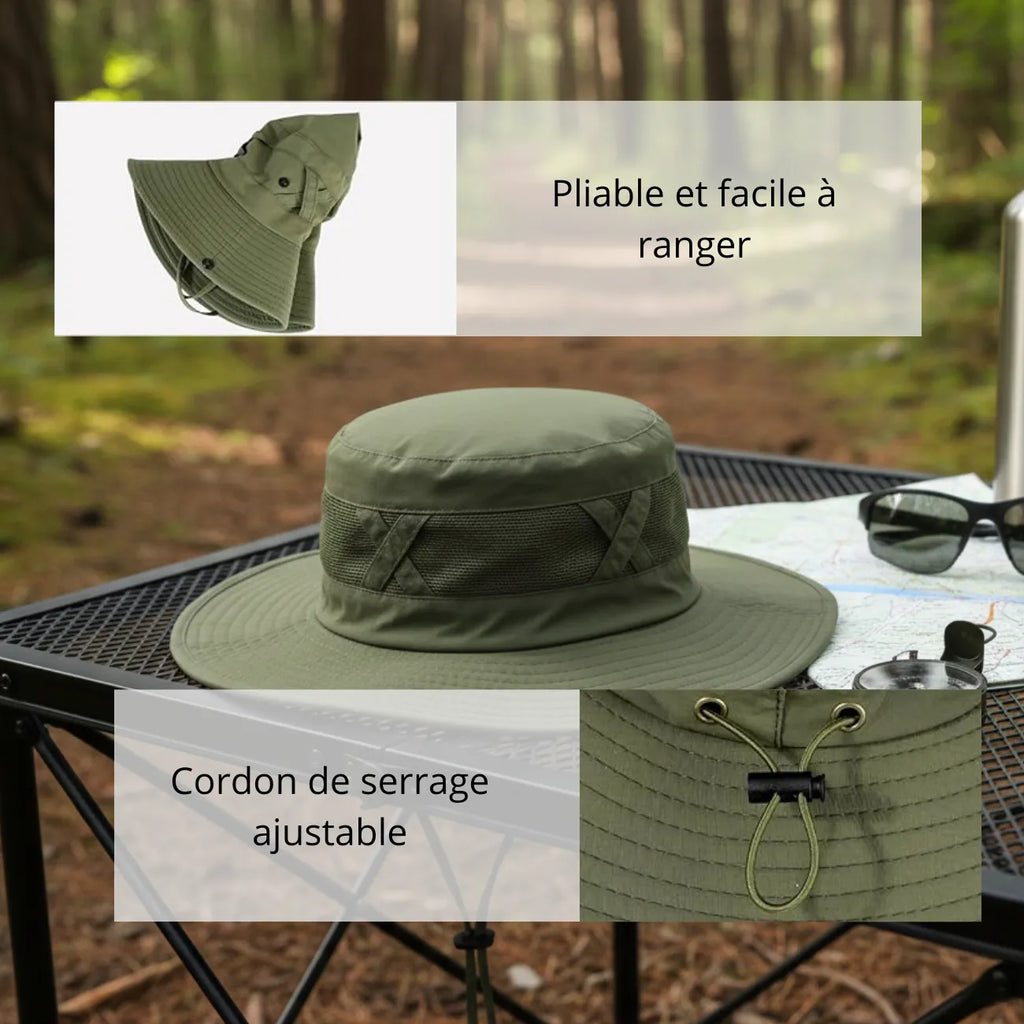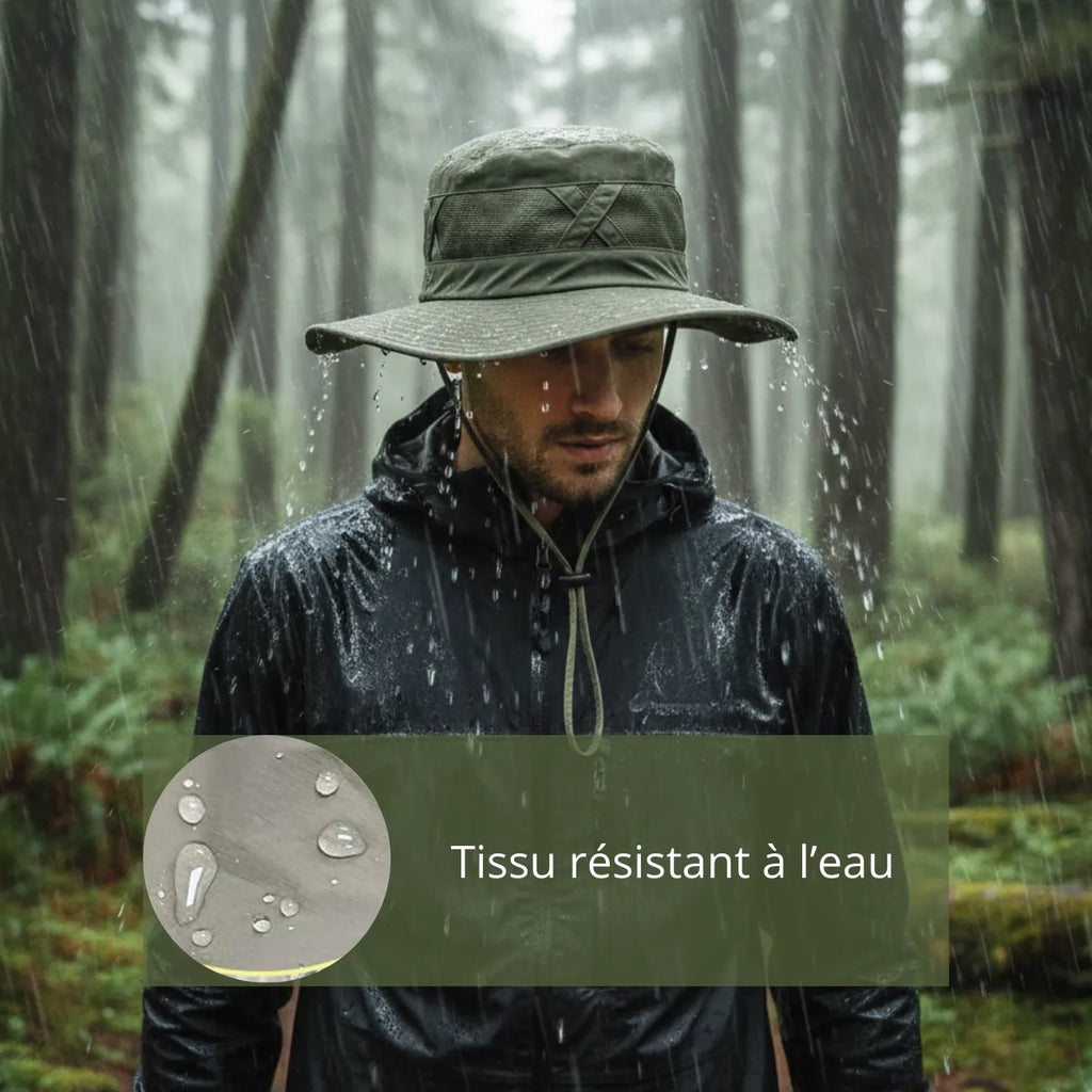 Combining casual cowboy style with outdoor performance, this ventilated hiking hat is designed to accompany you on all your outdoor adventures. Its 100% waterproof nylon construction effectively protects against the elements, while the breathable mesh lining ensures optimal ventilation and quick drying.