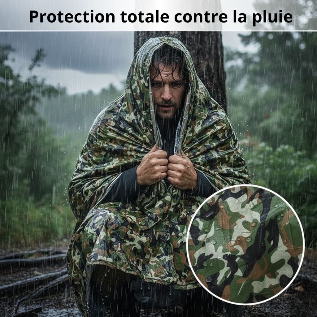 Utilisable comme poncho improvisé, pare-soleil, protection contre la pluie ou isolation d’urgence.