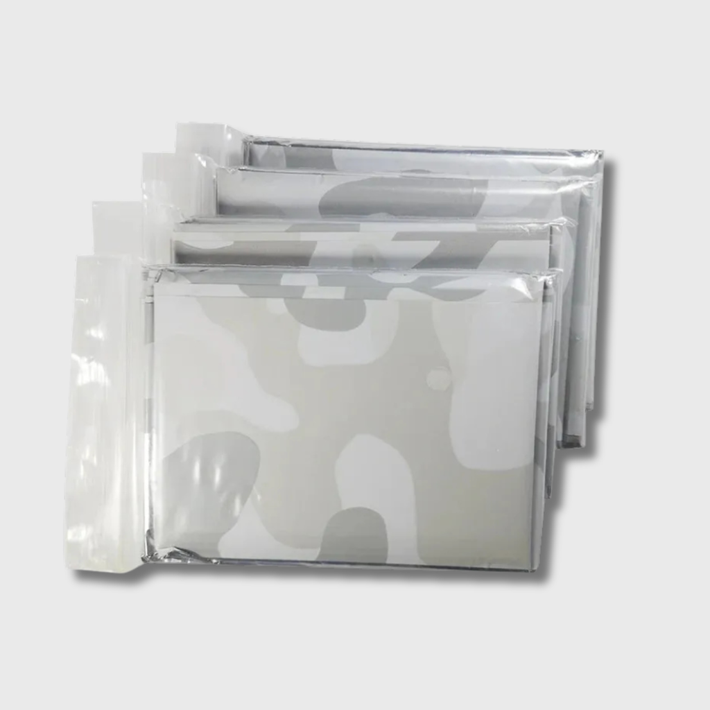 Le film PET argenté renvoie la chaleur et permet de signaler sa position en cas d’urgence.