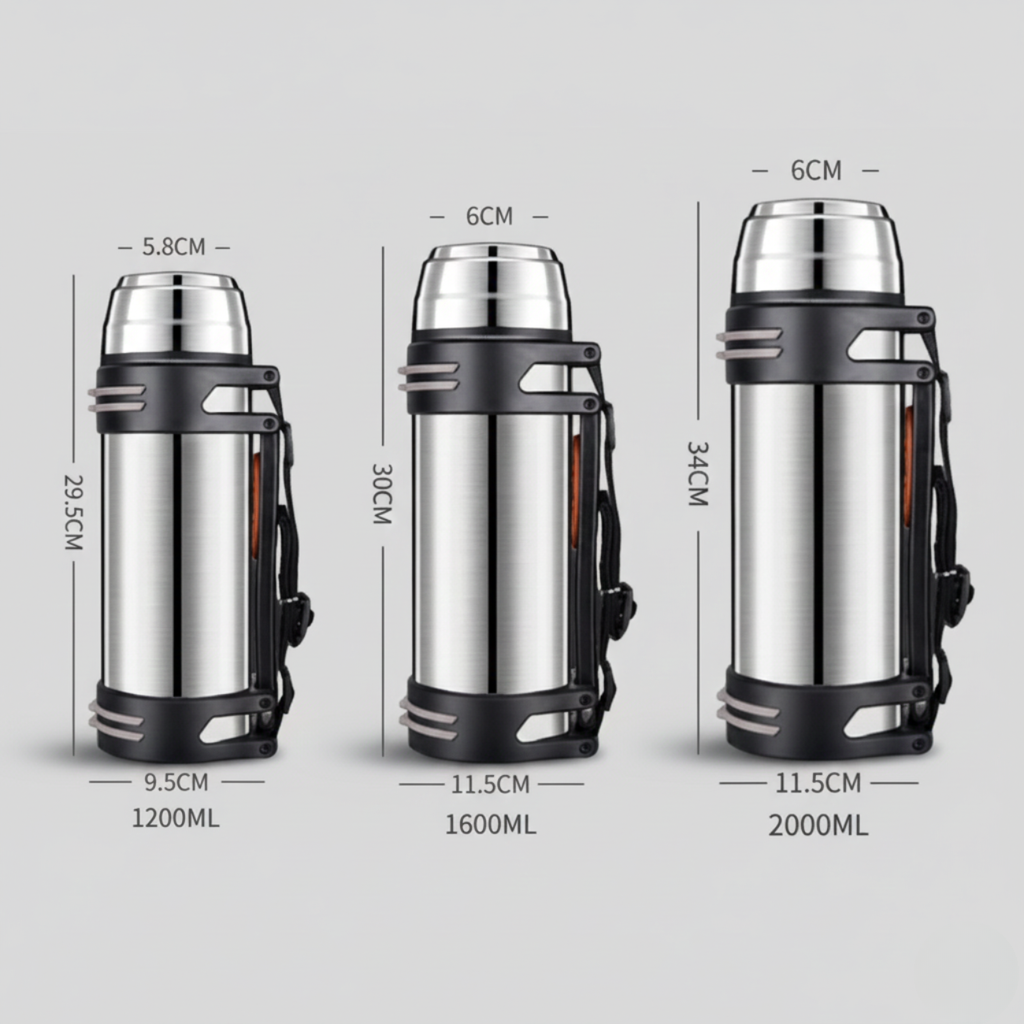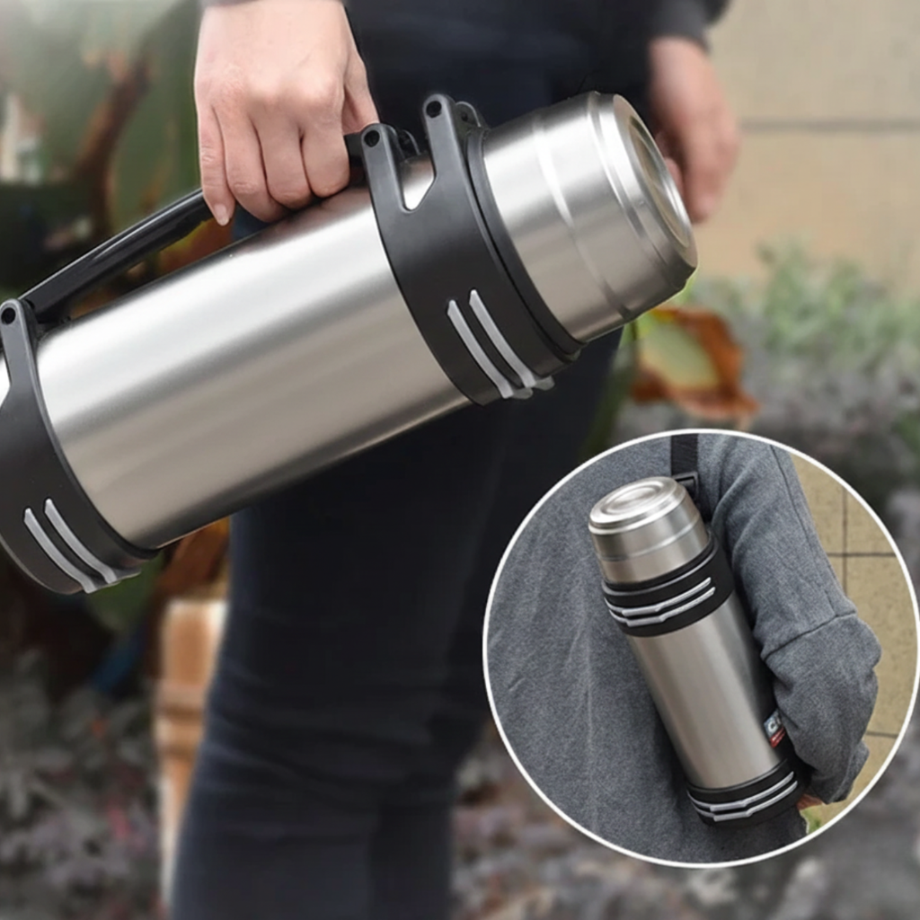 Idéale pour la randonnée, le trekking, le sport et les voyages, cette gourde isotherme grande capacité allie résistance, polyvalence et confort. Fabriquée en acier inoxydable et plastique robuste, elle permet de transporter facilement vos boissons chaudes ou froides, même lors des sorties les plus longues.