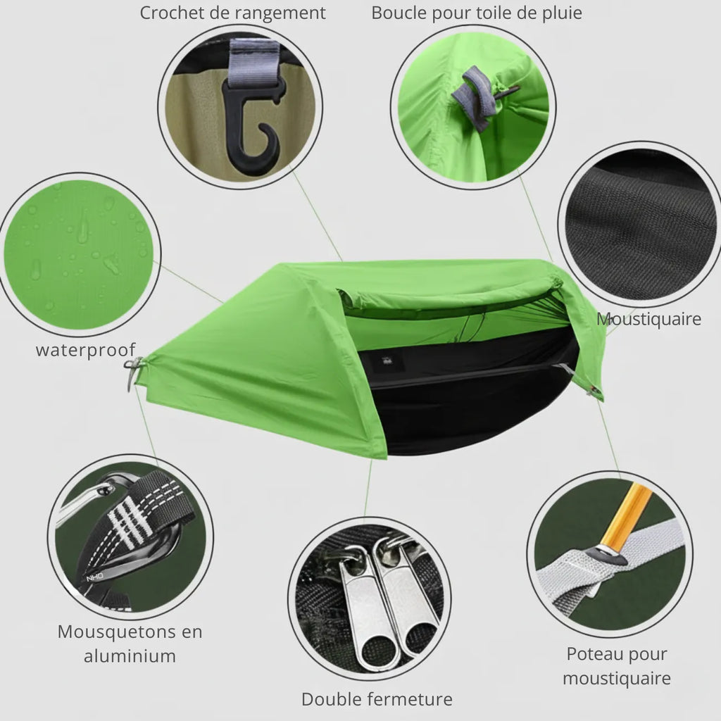 This hammock with mosquito net is lightweight and easy to carry , allowing you to enjoy relaxing moments anywhere outdoors, ready to use in seconds.