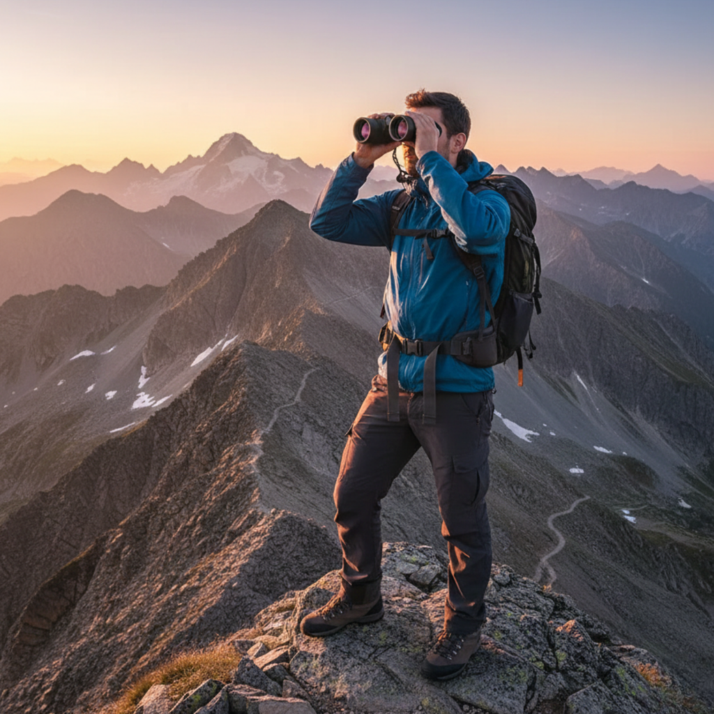 Jumelles de montagne 10x42 idéales pour observer la nature et les panoramas : randonnée, altitude et exploration, pour repérer clairement les détails même à distance.