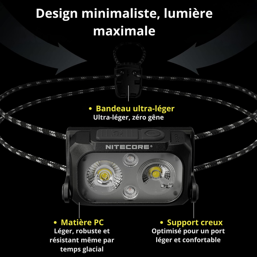 Une lampe frontale de randonnée conçue pour s’adapter à toutes les situations grâce à ses réglages multiples.