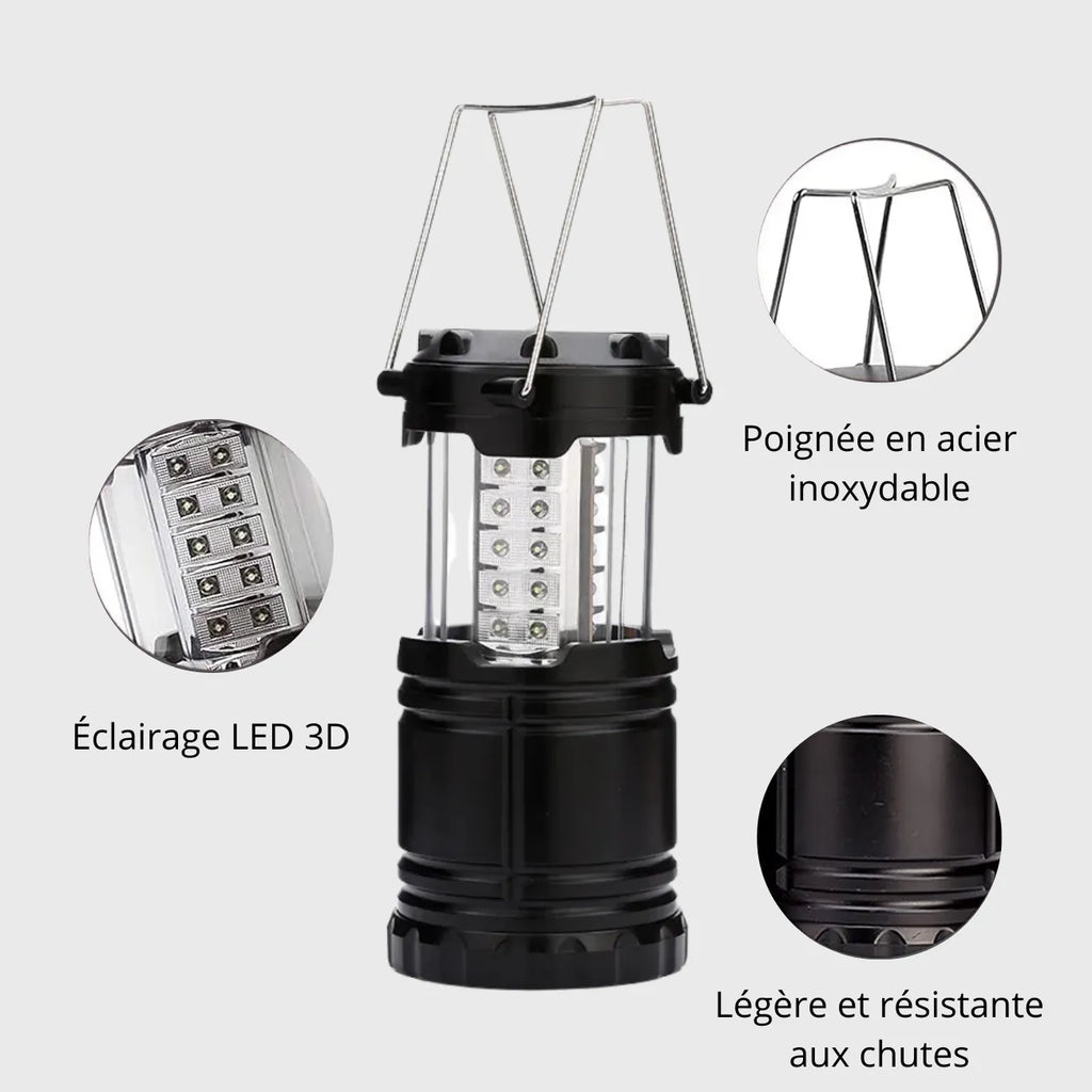 Its 30 COB LEDs diffuse a uniform 360° light to effectively illuminate a tent, a bivouac or a room without power.