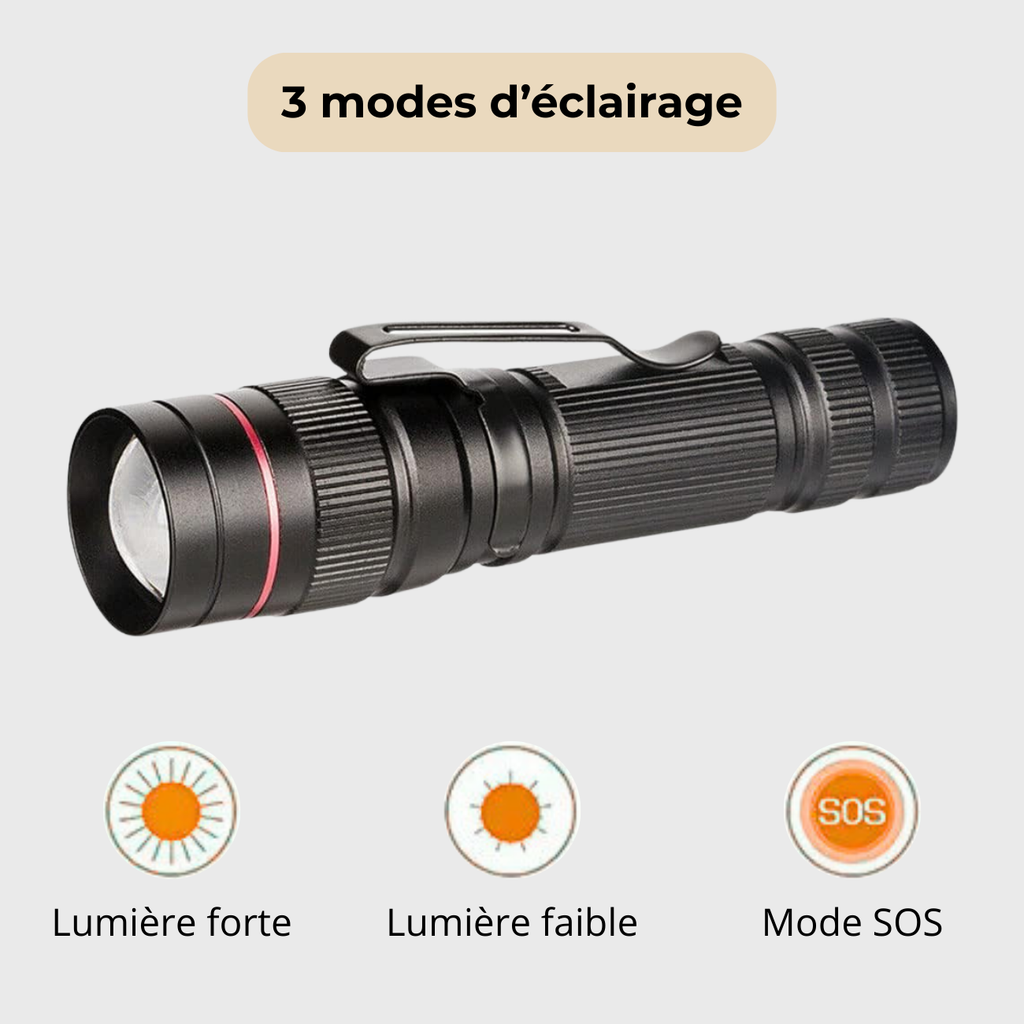 Cette lampe torche rechargeable vous offre un éclairage pratique, puissant et fiable pour toutes vos sorties