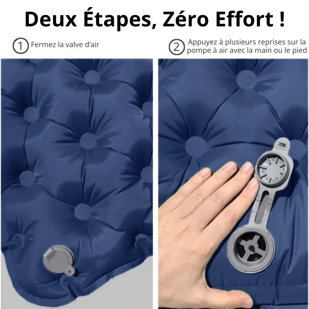Enjoy a restful sleep surrounded by nature with our mattress Inflatable camping pillow , designed to combine practicality and comfort. Thanks to its integrated pillow pump, it inflates easily and effortlessly, offering a sleeping soft And stable wherever you are.