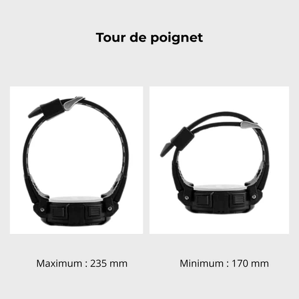 Stopwatch, alarm, automatic date and 24-hour military mode : everything you need for sports and everyday use.