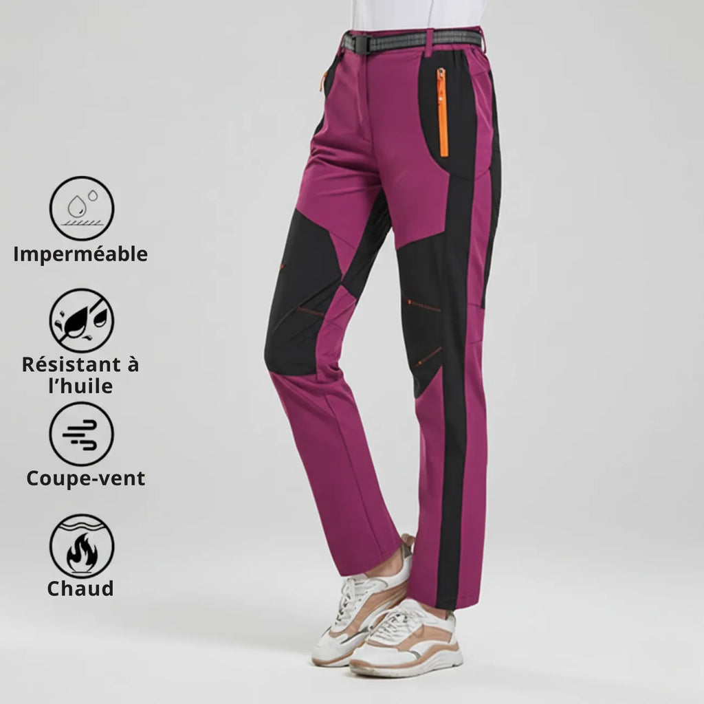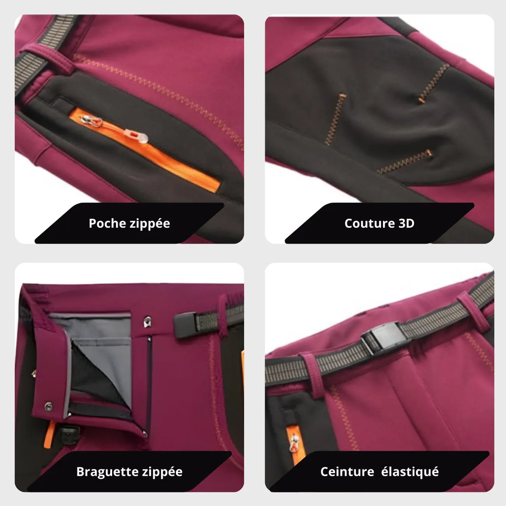These warm hiking pants are designed to withstand a cold winter and harsh outdoor conditions. Their fleece lining provides immediate warmth, while their technical fabric combines windproof protection , waterproofing , and breathability .