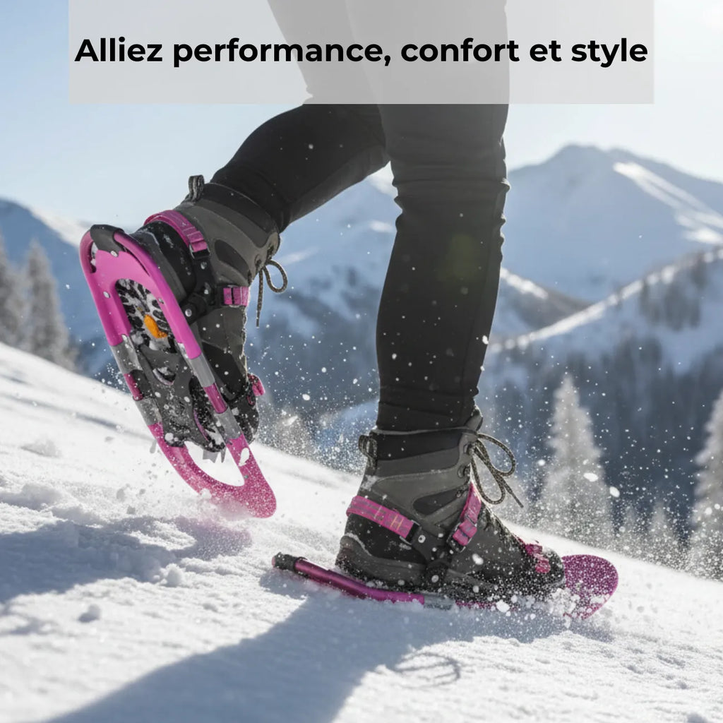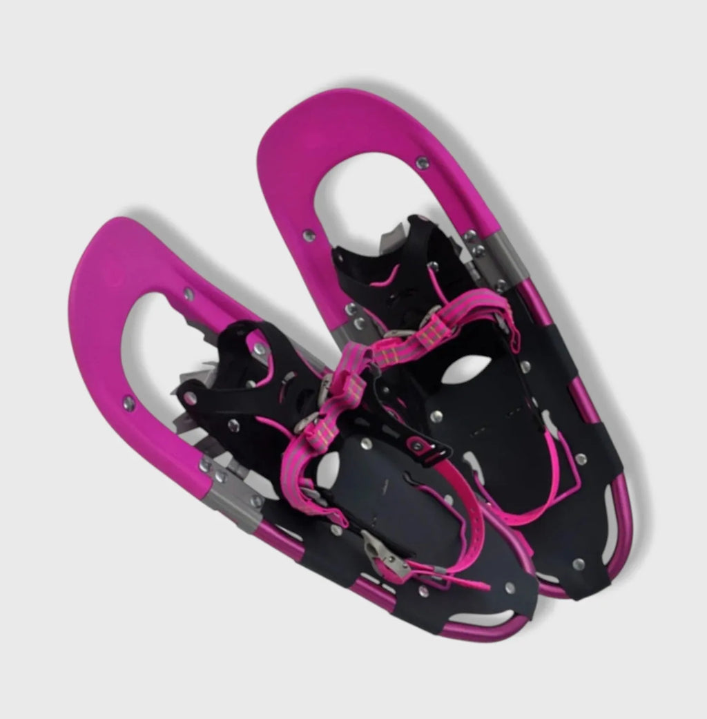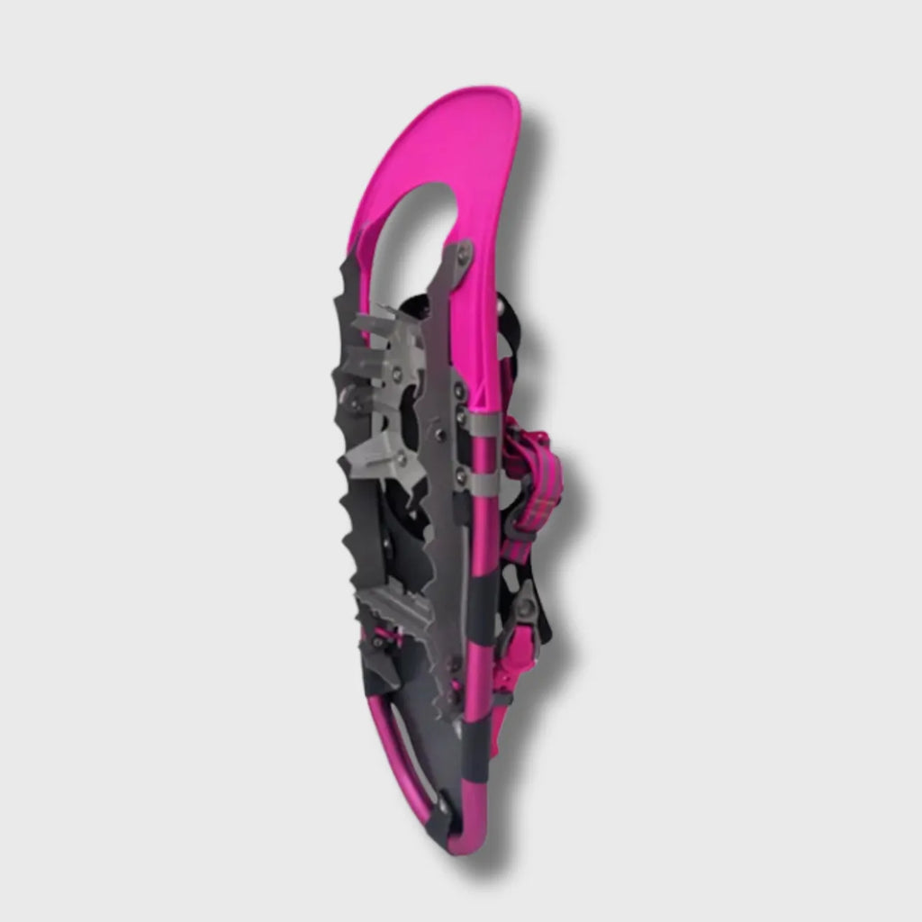 Lightweight, ergonomic, and featuring an integrated heel lift system , our pink snowshoes offer extra support on ascents, reduce fatigue, and enhance your comfort during long winter hikes. Thanks to their flexible plastic , ultra-durable 6000 series aluminum frame , and coated steel side crampons , they guarantee excellent grip on snow and ice, while adding a touch of style to your adventures.
