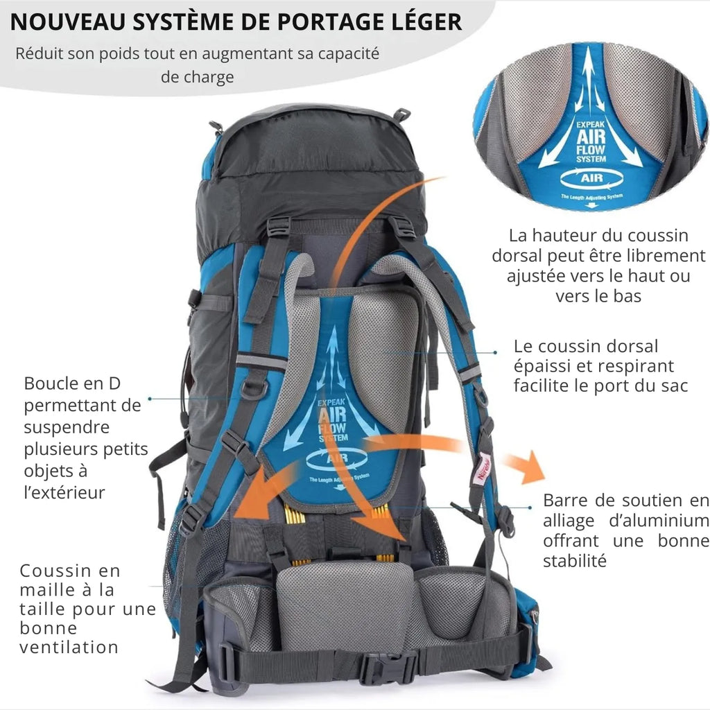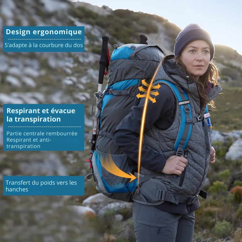 With a capacity of 70 liters , our trekking bag offers you the necessary space. for all your outdoor getaways.