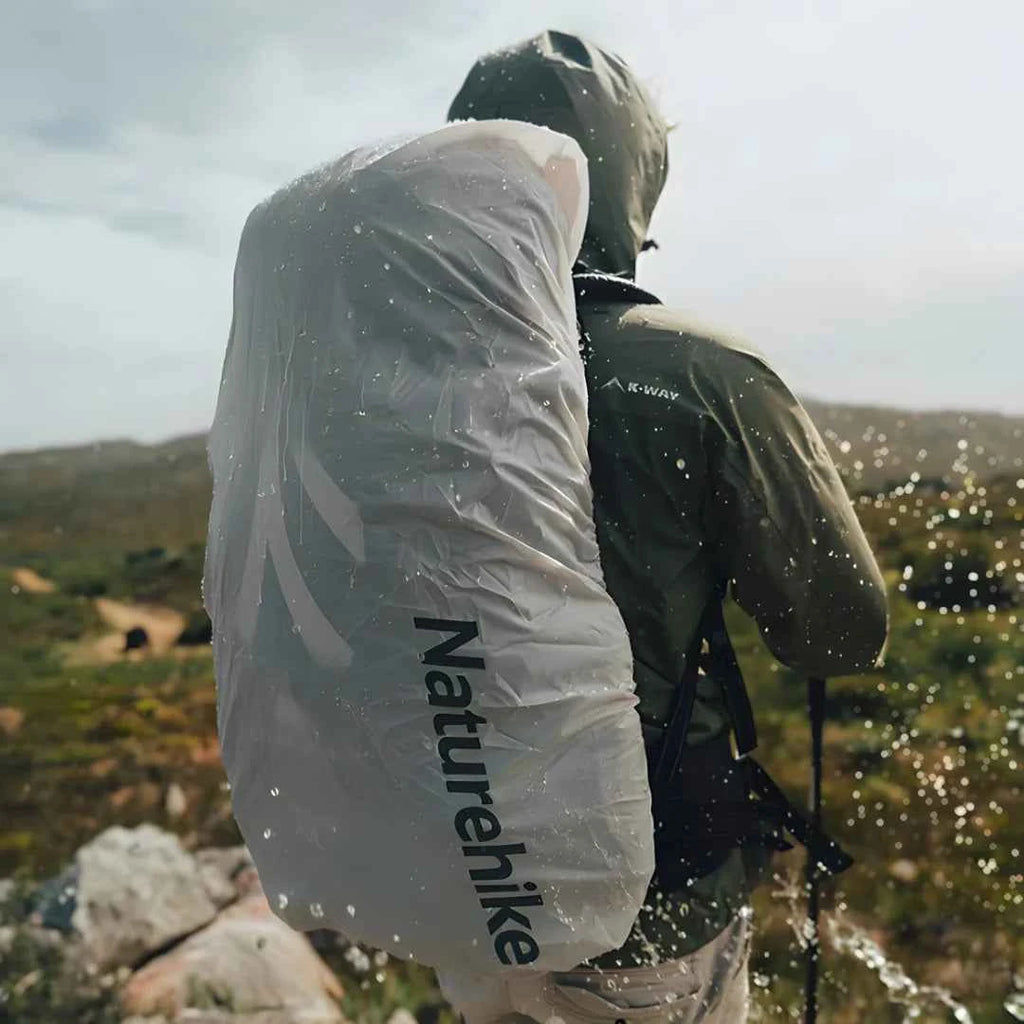 Nylon imperméable + housse intégrée pour rester prêt par tous les temps.