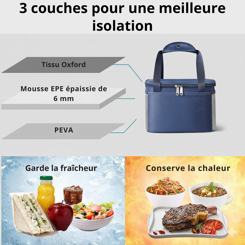 Emportez facilement repas, boissons et encas, parfait pour vos sorties, pique-niques ou journées à la plage.