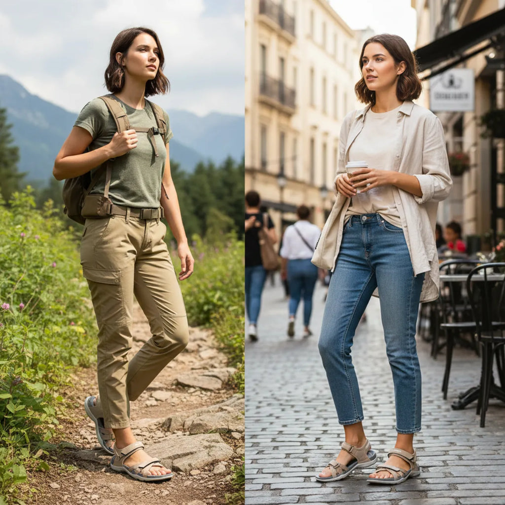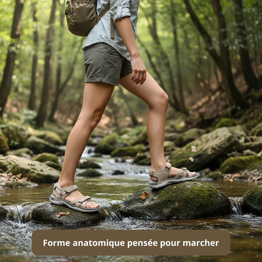 These These trekking sandals are designed to accompany your outdoor activities in warm weather. Their breathable mesh upper ensures good ventilation for the foot, while the robust and non-slip TPR sole guarantees stability and safety on varied terrain.
