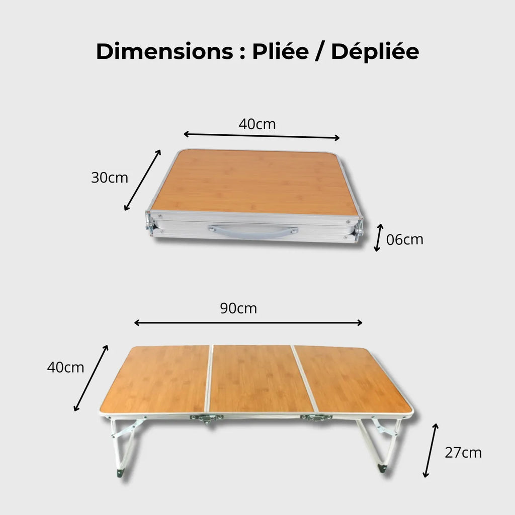 Made from natural bamboo with an aluminum frame , this table is both ecological, safe and aesthetically pleasing for all your outdoor meals.
