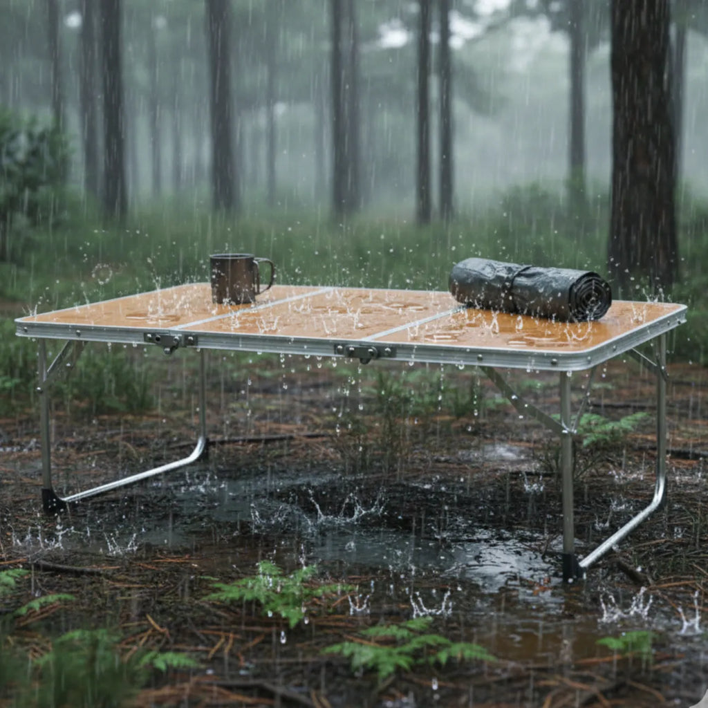 - Structure: 3-section folding bamboo tabletop with aluminum legs and locking mechanism