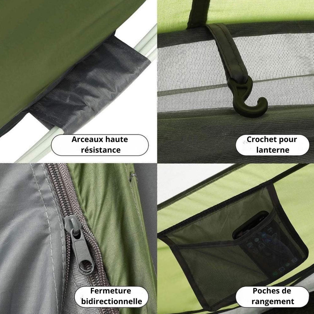 Profitez d'un montage instantané pour bénéficier rapidement de votre espace de repos, idéal pour les aventures en plein air.