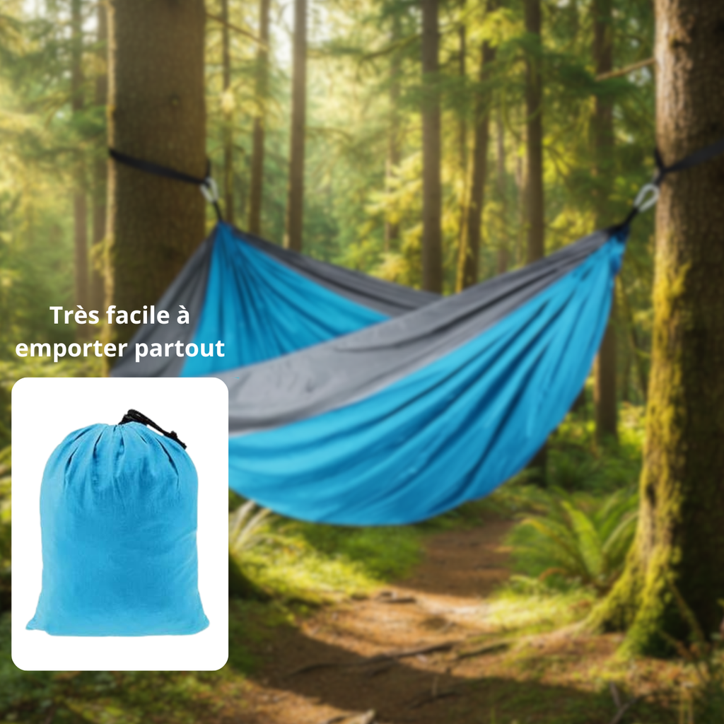 Ce hamac en nylon parachute léger et respirant vous offre un couchage spacieux et confortable pour vous détendre, lire ou faire la sieste.